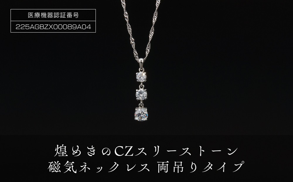 ■ダイヤのような豪華な輝き、3粒計6.2ctのキュービックジルコニアが素敵な磁気ネックレス。