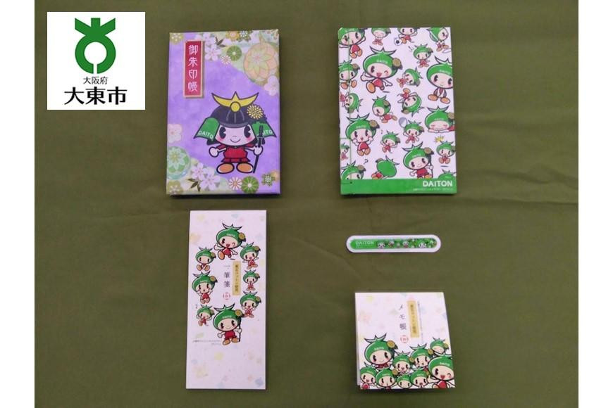 御朱印帳・和装ノート・一筆箋・メモ帳・ガラス爪やすりのセットで、ダイトンをかわいらしくデザインしています。