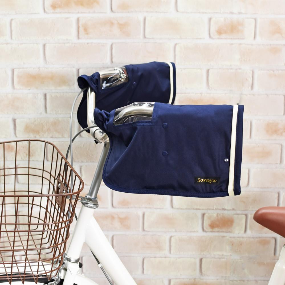 配色パイピング入り自転車用ハンドルカバー ネイビー