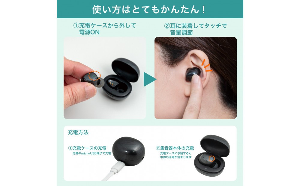 「聞こえにくい」を手軽にサポートする、イヤホン型の充電式集音器。