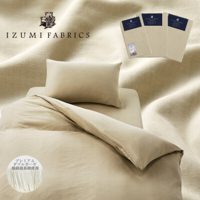 <シングル>プレミアムガーゼカバー掛・35cm巾ボックスシーツ・枕3点セット 色:シャンパンベージュ【1240353】