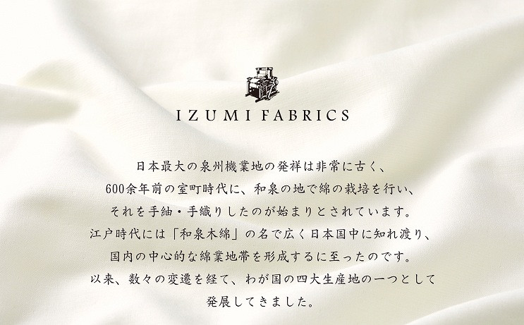 たては80番手、横は100番手の極細超長綿を、二重ガーゼに織り上げました。細く繊細でやわらかな風合い、ガーゼにも関わらず上品な光沢は、厳選されたインド超長綿ならではの仕上がりです。抗菌防臭加工SEKマーク取得の生地です。