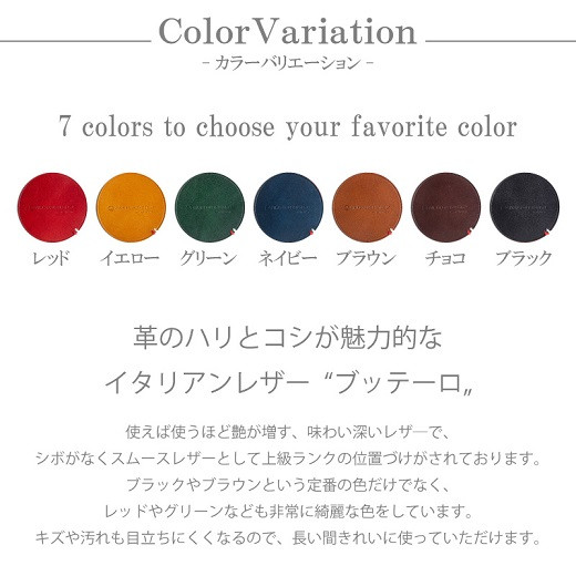 ブラックやブラウンという定番の色だけでなく、レッドやグリーンなども非常に綺麗な色をしています。