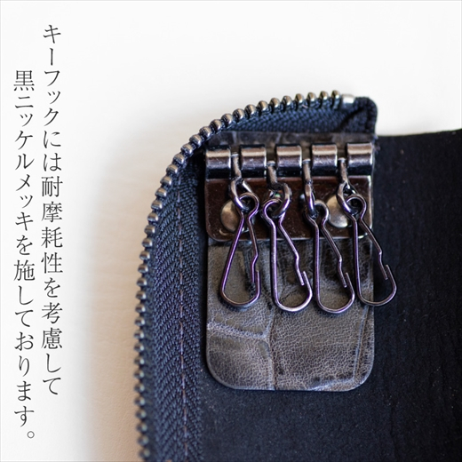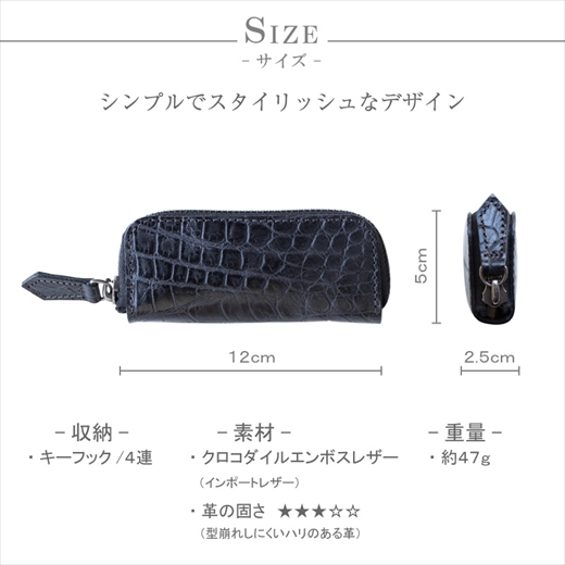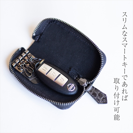 立体感のあるワニ革模様に仕上げたクロコダイルエンボスレザーで作ったキーケース。