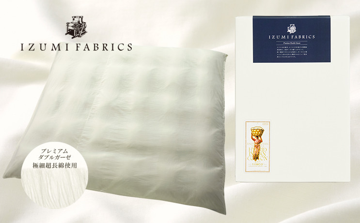 たては80番手、よこには100番手という細くて柔らかい超長綿糸(ユニチカ「ラムコ/RAMCO」)を和泉市内の工場で二重ガーゼに織り上げました。