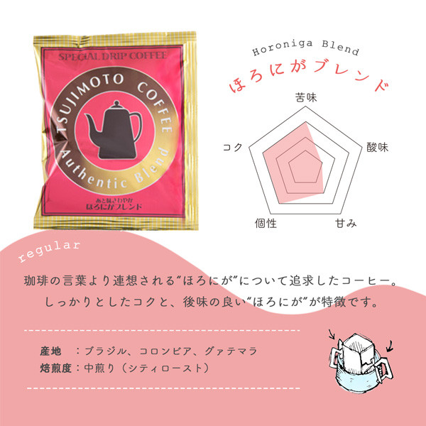 コーヒーの言葉より連想される「良質な“ほろ苦”とは」という原点回帰より誕生した1杯10g入りのスペシャルドリップコーヒーです。