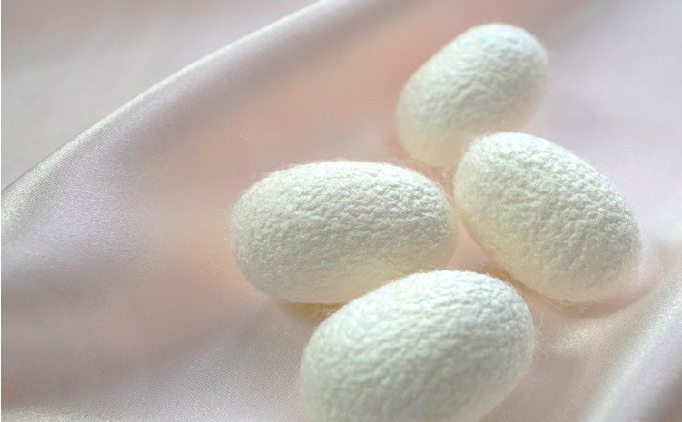 シルクはお肌の成分に近い約20種類のアミノ酸が数百~数千も結合したタンパク質繊維で、素肌にとてもやさしい繊維です。