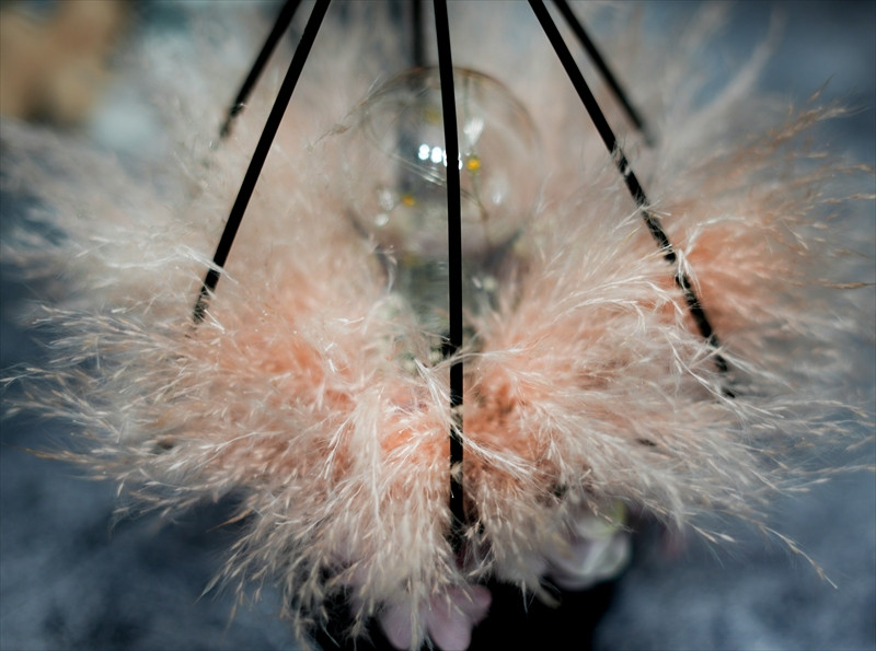 天然のパンパスを1つずつ丁寧に下処理し、ランプに装飾を加えていきます。創作の途中でそれぞれ個性を持った作品になります。どの製品も、お使いになられる方が喜んでくれることを想って大切に作っています。