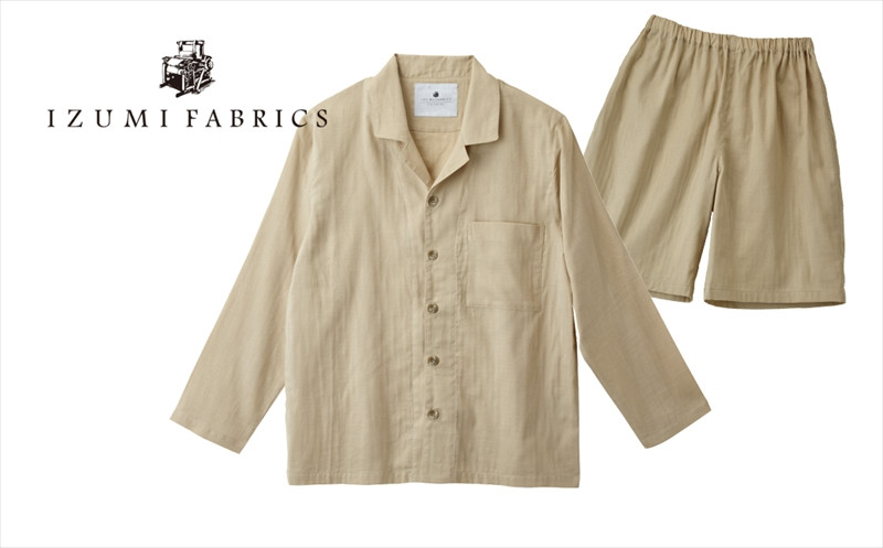 <男女兼用 サイズ:S>長袖×半ズボン プレミアムガーゼパジャマ (カラー:シャンパンベージュ)【1415568】