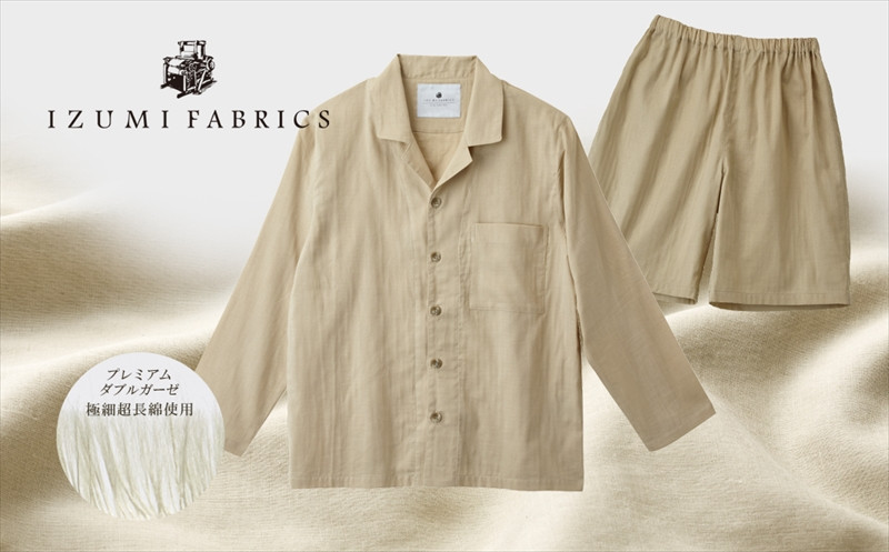 <男女兼用 サイズ:L>長袖×半ズボン プレミアムガーゼパジャマ (カラー:シャンパンベージュ)【1415572】