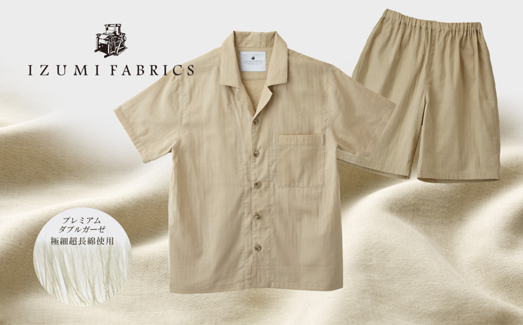 <男女兼用 サイズ:XS>半袖×半ズボン プレミアムガーゼパジャマ (カラー:シャンパンベージュ)【1415541】