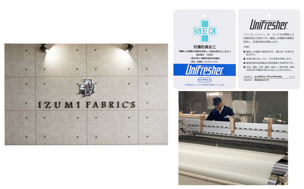 たては240番手、よこには360番手という紡績糸では特に細いレベルの精紡交撚糸で丁寧に織り上げました。