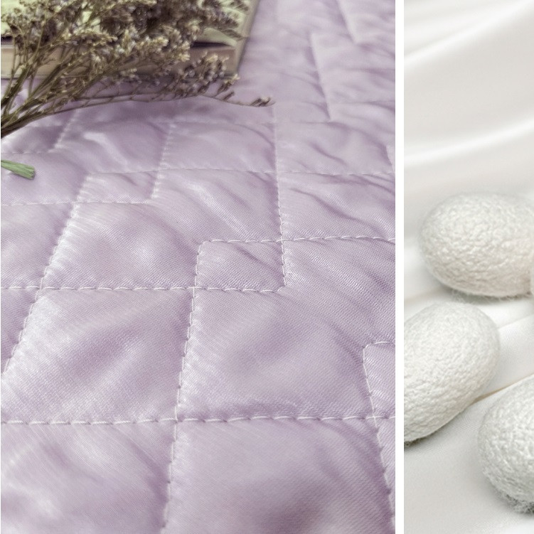 ピュアシルクの表生地には、タテ糸にシルク100%、ヨコ糸にコットン100%を使った朱子織生地を使用。