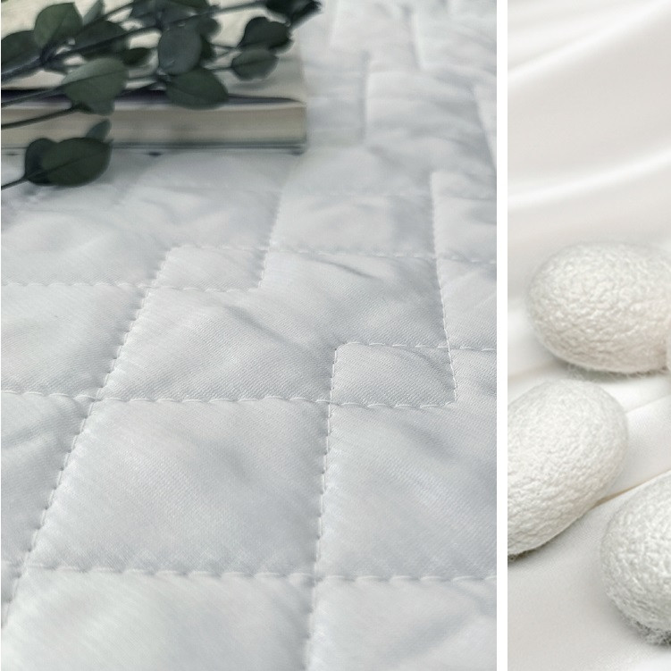 ピュアシルクの表生地には、タテ糸にシルク100%、ヨコ糸にコットン100%を使った朱子織生地を使用。
