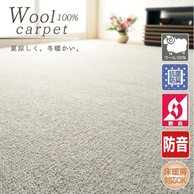 <江戸間6畳>快適ウール100%カーペット アイボリー(ポルト 江戸間6畳IV)【1493318】
