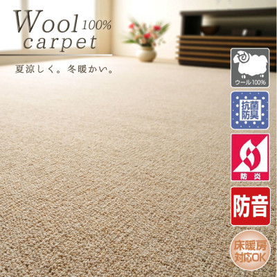 <江戸間10畳>快適ウール100%カーペット ベージュ(ポルト 江戸間10畳BE)【1493329】