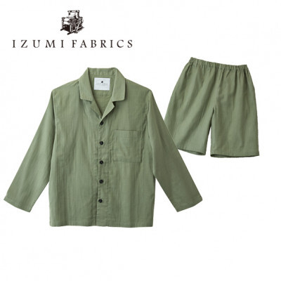 <男女兼用 サイズ:L>長袖×半ズボン プレミアムガーゼパジャマ (カラー:ミモザグリーン)【1538865】
