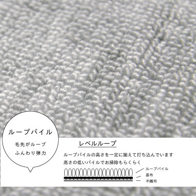 カーペット 日本製 防音 厚手 防ダニ プレミアムループ 261×352cm 江戸間 6畳用 グレー【1548351】