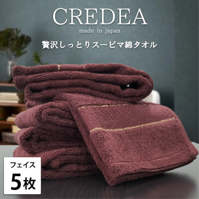 ※画像はイメージです。お届けするのは「【フェイス5枚組】贅沢スーピマ綿フェイスタオル(34×80cm)クレディア【ワインレッド】×1セット」です。