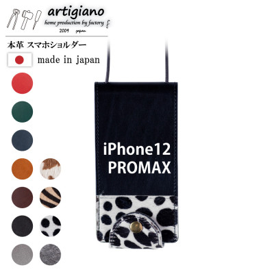 <本革 スマホショルダー>ダルメシアン iPhone12PROMAX 手帳型<apo-22hh>【1556629】