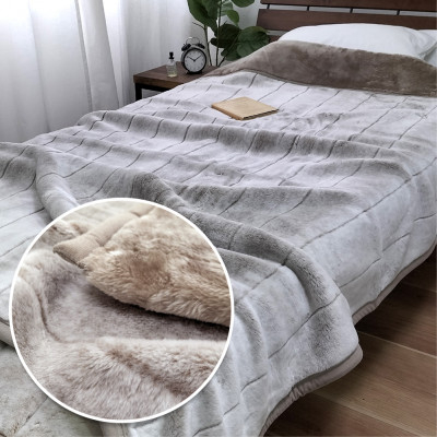 ※画像はイメージです。お届けするのは、【シングル2枚組】吸湿発熱リッチファー2枚合わせ毛布(140×200cm)×1セット(ベージュ1枚・グレー1枚)です。