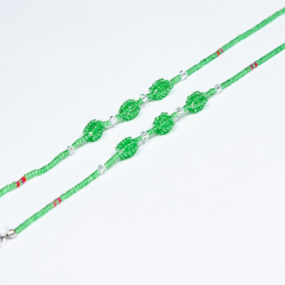 いずみガラスを使用したハンドメイドのメガネチェーン(緑色)AN166【1565039】