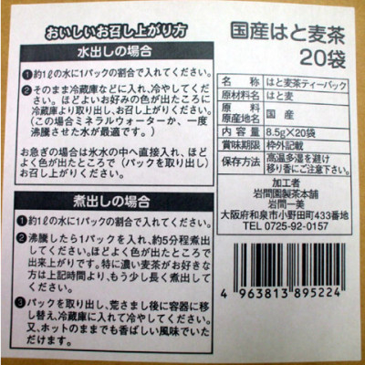 直火焙煎「国産はと麦茶」20袋×6本入【1591680】