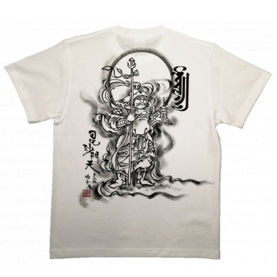 手描きTシャツ 仏画 毘沙門天 白 (半袖 XLサイズ)【1615040】