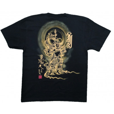 手描きTシャツ 仏画 毘沙門天 黒 (半袖 Lサイズ)【1615046】