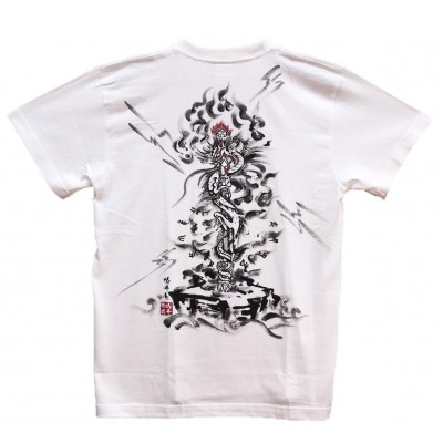 手描きTシャツ 仏画 倶利伽羅不動 白 (半袖 Sサイズ)【1614999】