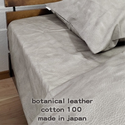 ※画像はイメージです。お届けするのは、【セミダブル】レザー調プリント綿100%ボックスシーツ(120×200×30cm)×【カウレザー】ベージュ1枚です。