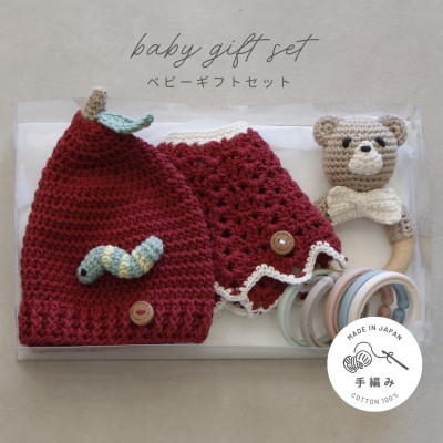 HOPPL(ホップル) 手編みべビーギフトセット(アップルSサイズ/クマガラガラ)【1643399】