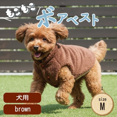 もこもこボアベスト ドッグウェア Mサイズ ブラウン 犬用 ハンドメイド fofodog【1688576】