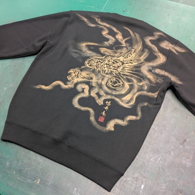 手描き トレーナー 龍神 黒 (裏起毛 Mサイズ)【1703466】
