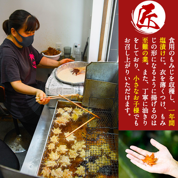 もみじの葉に衣をつけて油で揚げているので、見た目も可愛らしく、風情があります。