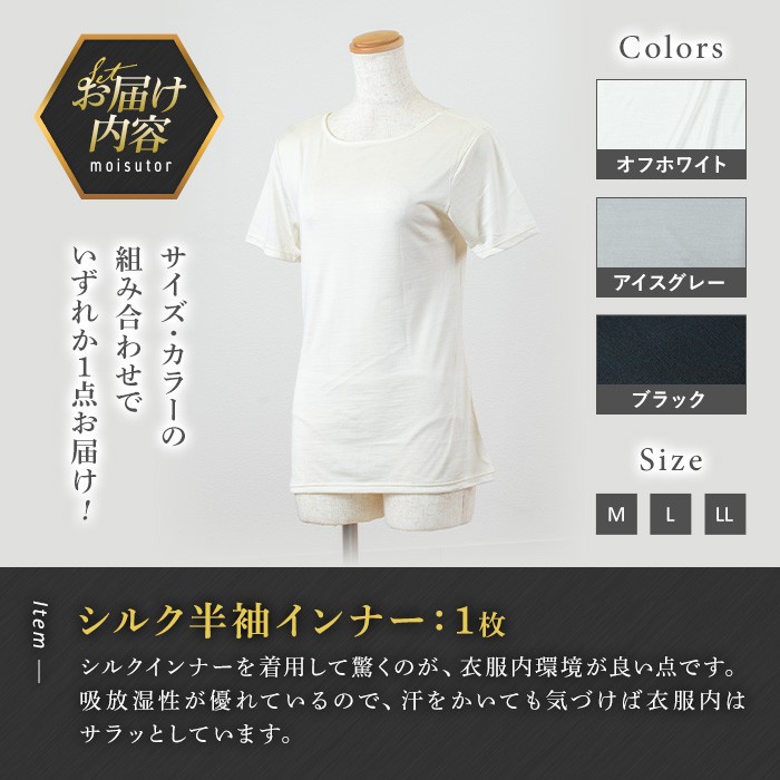 <シルク100%> シルク半袖インナー(1枚/M~LL/カラー3色)シル…