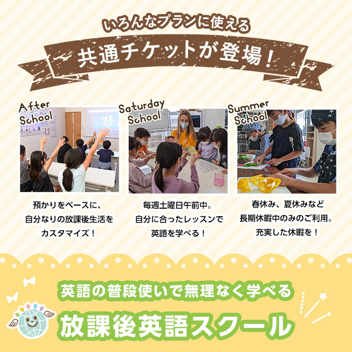 体験チケット 利用券 子供 子ども こども 体験 アフタースクール サタデースクール 夏休み 春休み 冬休み 長期休暇 英語 勉強 小学生