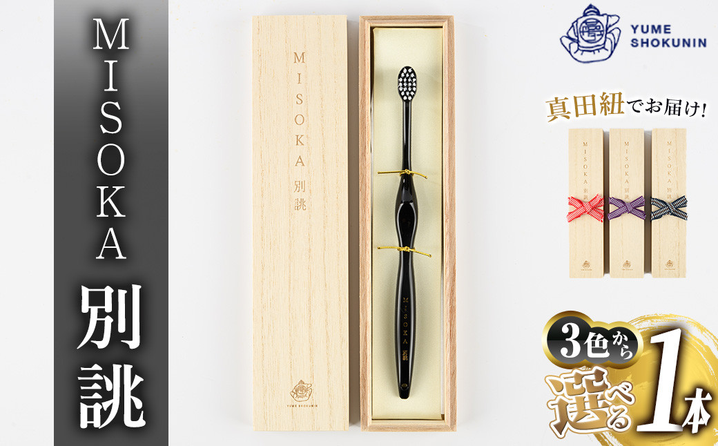 職人技の到達点 違いがわかるお客様へ特別な仕上げを施したMISOKAの限定品 <真田紐の色を選べる>別誂歯ブラシ(1本・木箱入)【m06-35】【夢職人】