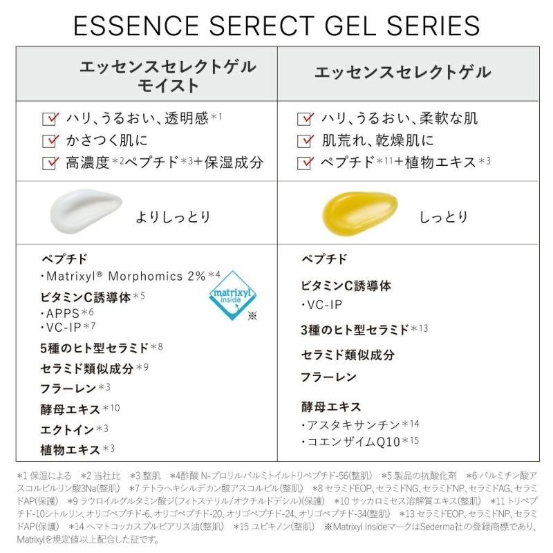 | 容量 | エッセンスセレクトゲル モイスト:100g(約2ヶ月分) |