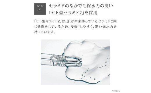 *1 セラミド1(EOP)、セラミド2(NG)、セラミド3(NP)、セラミド5、セラミド6II(AP)(保護) *2 年齢に応じた保湿、ハリのお手入れ