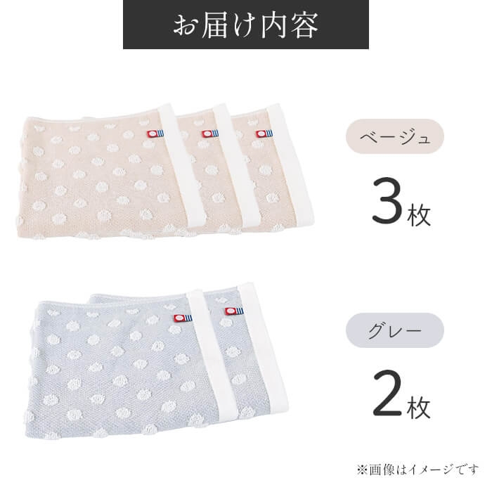 小さなドットが特徴の今治ブランドタオル。 今治タオルブランド プチドット タオルハンカチ(ベージュ3枚 グレー2枚 計5枚) 【m95-33】【小杉善】