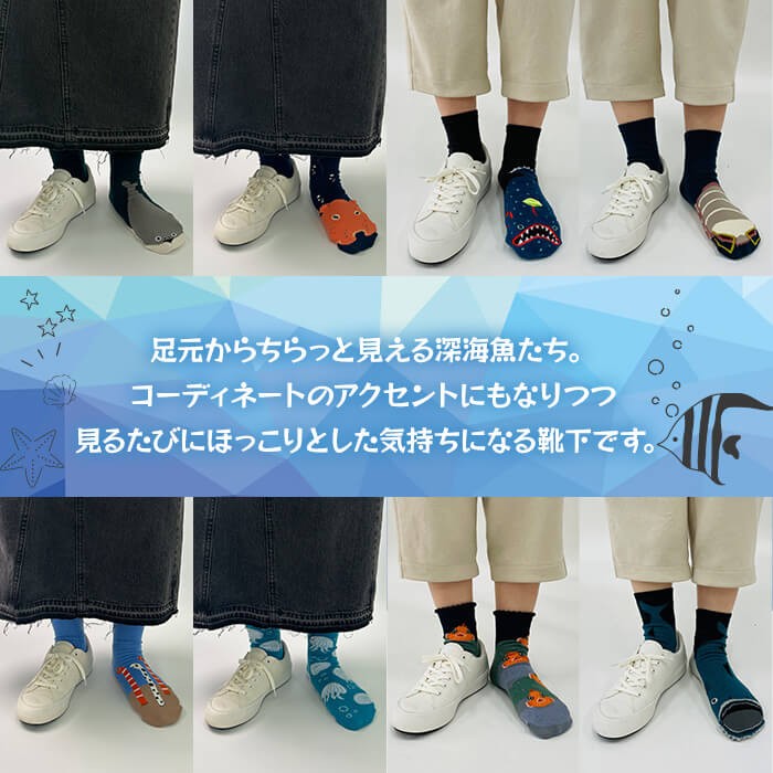 ふるさと納税 箕面市 特産品 レディースソックス 靴下 深海魚ソックス 海の生き物 魚柄 動物柄 ソックス かわいい メンダコ チョウチンアンコウ チンアナゴ ミズクラゲ サカバンバスピス ナメダンゴ メガマウス