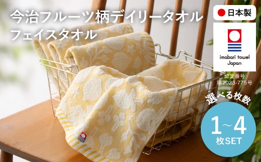 かわいらしいフルーツ柄の今治タオル <選べる枚数>今治フルーツ柄デイリータオル フェイスタオル(イエロー・1枚/2枚/4枚) 【m100-20】【トクダ】