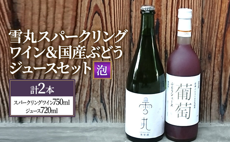 雪丸スパークリングワイン白発泡性750ml1本、国産ぶどうジュー720ml1本のセットです。
