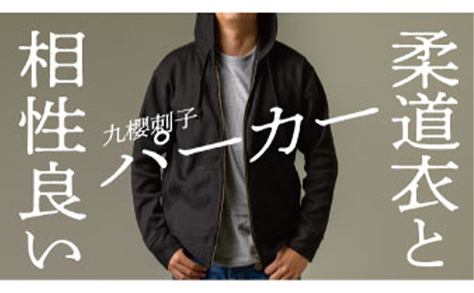 柔道衣メーカーが織り上げた生地で作る九櫻刺子パーカー 黒