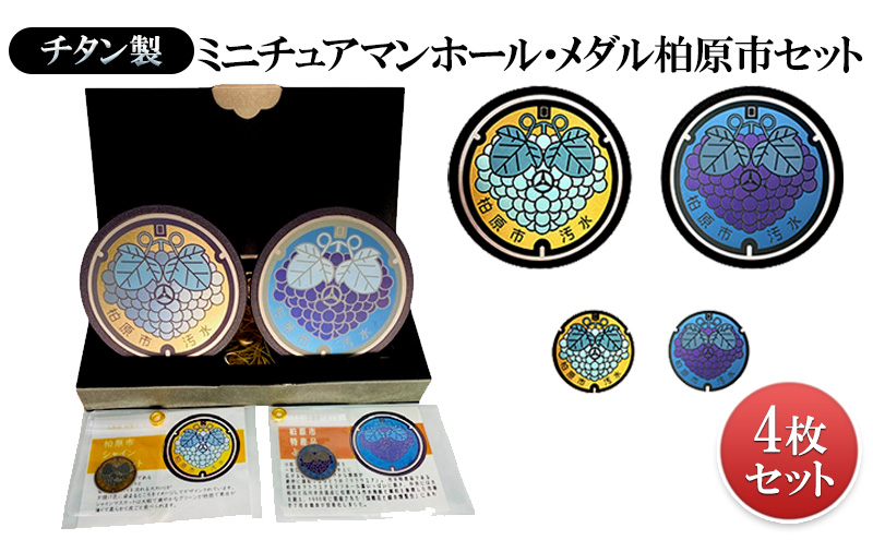 チタン製ミニチュアマンホール・メダル柏原市セット【ぶどう・シャインマスカット】