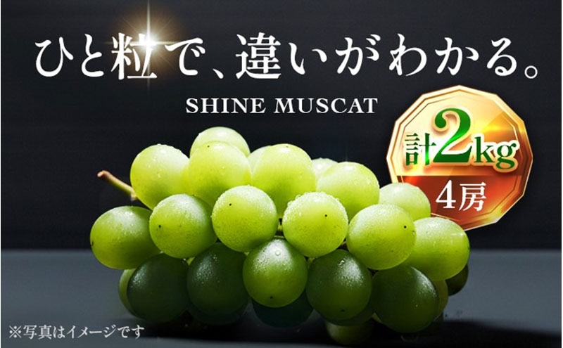 直売所では試食で納得した方だけにお届けする人気の逸品 【2026年先行予約】苗から厳選 シャインマスカット2kg(4房) 9月上旬~下旬発送 大粒 ぶどう ブドウ フルーツ 果物 くだもの おすすめ
