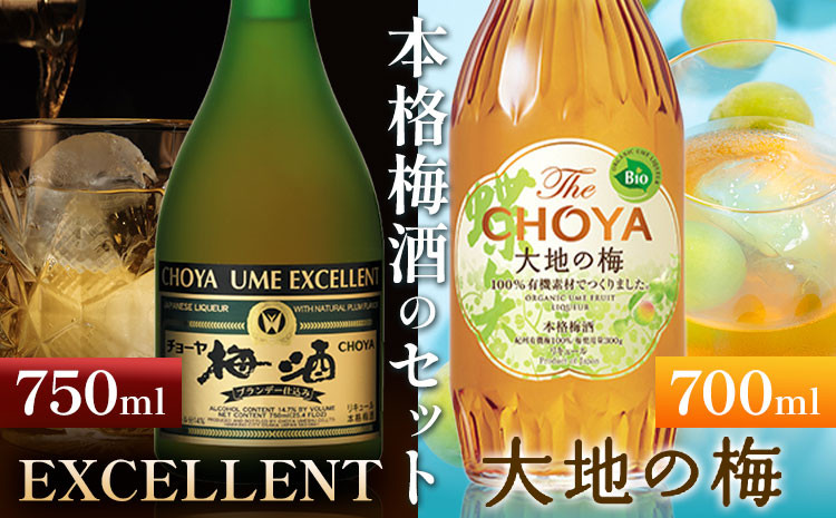 本格梅酒のセット THE CHOYA 大地の梅 700ml EXCELLENT エクセレント 750ml 計2本 セット 飲み比べ 羽曳野商工振興株式会社《30日以内に出荷予定(土日祝除く)》大阪府 羽曳野市 送料無料 梅酒 梅 酒 CHOYA チョーヤ チョーヤ梅酒 お酒 紀州 南高梅
