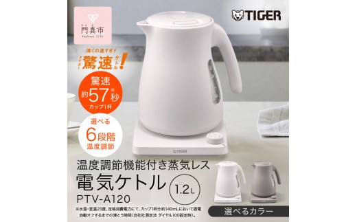 タイガー魔法瓶 温度調節機能つき蒸気レス電気ケトル 1.2L PTV-…