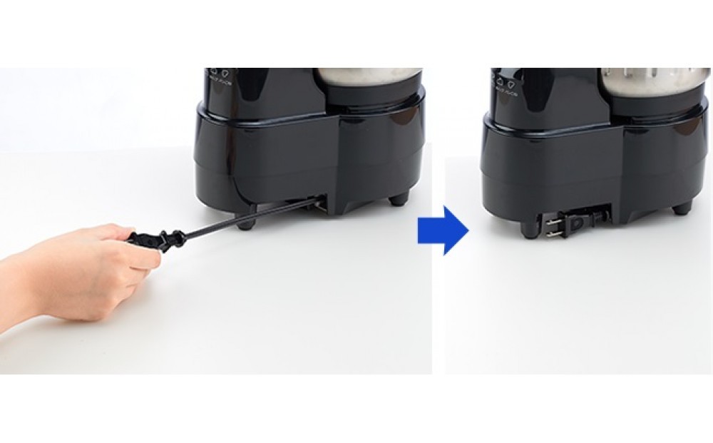 付属品を本体と一体にして収納できます。おろしカッター、パンこねブレード、ホイップブレードが入る収納プレート。本体に取りつけて一体型に、コンパクトにまとめられます。